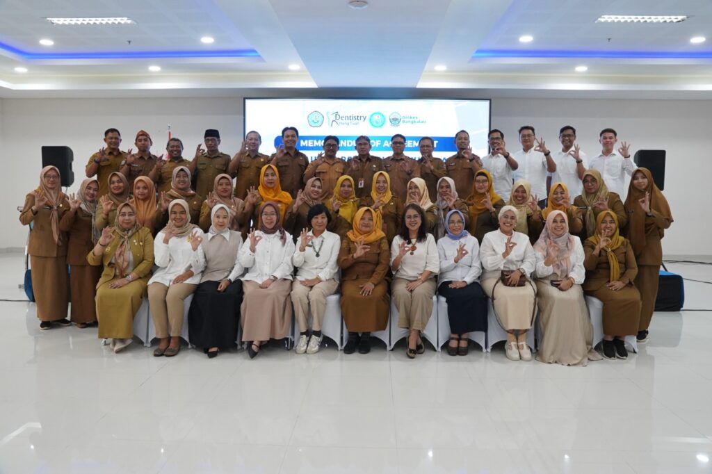 Liputan7terkini-Surabaya, 26 Januari 2026 – Bertempat di Fakultas Kedokteran Gigi Universitas Hang Tuah (FKG UHT), Fakultas Kedokteran Gigi Universitas Hang Tuah (UHT) bersama Rumah Sakit Gigi dan Mulut Pendidikan (RSGMP) Nala Husada resmi menjalin kerja sama dengan Dinas Kesehatan Kabupaten Bangkalan dalam rangka penguatan pendidikan, penelitian, dan pengabdian kepada masyarakat. Kerja sama tersebut ditandai dengan penandatanganan nota kesepahaman (MoU). Dekan Fakultas Kedokteran Gigi Universitas Hang Tuah, Dr. Kristanti Parasihni, drg., M.Kes., PBO., menyampaikan bahwa kerja sama ini merupakan bagian dari komitmen FKG UHT untuk terus berkiprah aktif di tengah masyarakat, khususnya dalam peningkatan derajat kesehatan gigi dan mulut.Ia menjelaskan bahwa FKG UHT memiliki visi sebagai fakultas kedokteran gigi unggul dengan keunggulan di bidang penelitian kelautan dan kemaritiman, serta berorientasi pada kebutuhan kesehatan masyarakat. “Kerja sama ini tidak hanya sebatas pendidikan klinik bagi mahasiswa, tetapi juga menjadi sarana sinergi antara dunia akademik dan pemerintah daerah dalam bidang penelitian serta pengabdian kepada masyarakat,” ujarnya. Kepala RSGMP Nala Husada, Kolonel Laut (Purn) Caecilia Indarti, drg., M.Kes., FISQua, menegaskan bahwa RSGMP memiliki tiga tugas utama, yakni pelayanan kepada masyarakat, pendidikan dan pelatihan tenaga kesehatan, serta penelitian dan pengabdian kepada masyarakat.Menurutnya, kerja sama ini menjadi langkah strategis dalam mendukung pelayanan kesehatan gigi dan mulut, sekaligus sebagai wahana pembelajaran klinis bagi mahasiswa profesi dokter gigi.“Melalui sinergi ini, kami siap mendukung kegiatan promotif dan preventif, screening, hingga pemeriksaan dan pelayanan kesehatan gigi dan mulut bagi masyarakat,” jelasnya. Kepala Dinas Kesehatan Kabupaten Bangkalan, dr. Nunuk Kristiani, Sp.Rad., menyambut baik terjalinnya kerja sama antara FKG UHT, RSGMP Nala Husada, dan Dinas Kesehatan Kabupaten Bangkalan.Ia menegaskan bahwa kolaborasi ini sejalan dengan program Pemerintah Kabupaten Bangkalan dalam meningkatkan derajat kesehatan masyarakat, khususnya melalui penguatan layanan kesehatan gigi dan mulut.“Kerja sama ini kami harapkan tidak berhenti pada penandatanganan MoU, tetapi diwujudkan dalam program-program nyata yang memberikan manfaat langsung bagi masyarakat Bangkalan,” ujarnya. (****) Navigasi pos Rektor UHT dan Walikota Surabaya Bahas Skema Bantuan Kuliah bagi Mahasiswa UHT Dukung Pembinaan Karakter Mahasiswa lewat Diklatsar Menwa Mahasurya Jatim