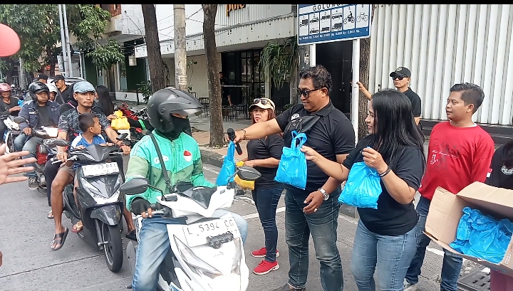 Melalui semangat berbagi di bulan suci Ramadhan, jajaran Polsek Gedangan Polresta Sidoarjo menggelar kegiatan pembagian takjil kepada masyarakat dan pengguna jalan di depan Mako Polsek Gedangan, Minggu (1/3/2026). Kegiatan sosial tersebut dipimpin langsung Kapolsek Gedangan, Kompol A. Agung GPW, bersama Ketua Ranting Bhayangkari Gedangan beserta pengurus, anggota Polsek Gedangan, serta melibatkan anak-anak disabilitas di wilayah Gedangan. Sebanyak kurang lebih 400 nasi kotak dibagikan kepada warga sekitar mako dan para pengendara yang melintas di Jalan Raya Gedangan. Aksi sosial ini juga terlaksana berkat kerja sama dengan Klinik DNY sebagai bentuk sinergitas dalam menebar kebaikan kepada sesama di bulan penuh berkah. “Bagi takjil ini merupakan wujud kepedulian Polri terhadap masyarakat, khususnya bagi mereka yang masih berada di perjalanan saat waktu berbuka puasa tiba,” ujar Kompol A. Agung GPW. Selain membagikan makanan berbuka, personel juga menyampaikan pesan-pesan kamtibmas agar situasi wilayah tetap aman dan kondusif selama Ramadhan. Kehadiran Bhayangkari dan anak-anak disabilitas turut menambah suasana haru dan kebersamaan. Semangat gotong royong serta kepedulian sosial terlihat jelas ketika seluruh pihak turun langsung menyapa dan menyerahkan nasi kotak kepada masyarakat dengan penuh kehangatan dan humanis. Salah satu warga Desa Gedangan, Suryati, mengungkapkan rasa senang dan terima kasih atas kegiatan tersebut. Ia mengaku terbantu dengan adanya pembagian takjil menjelang waktu berbuka puasa.(Arifin) Navigasi pos Ramadhan Penuh Berkah: PC PII Sidoarjo Santuni Yatim dan Pererat Silaturahmi Lewat Buka Bersama Puasa Ramadan Tak Surutkan Prestasi, Suasana Akademik UHT Tetap Hidup dan Inspiratif
